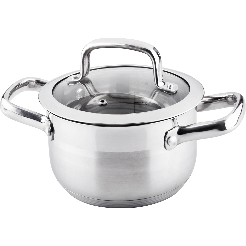 Pot with glass lid, ø16x9,5cm; 1,8l - Prestige High quality stainless steel cookware Made from first-class stainless steel Lid from durable glass with wide SS rim Lid with a hole for steam for precise cooking control Liter scale