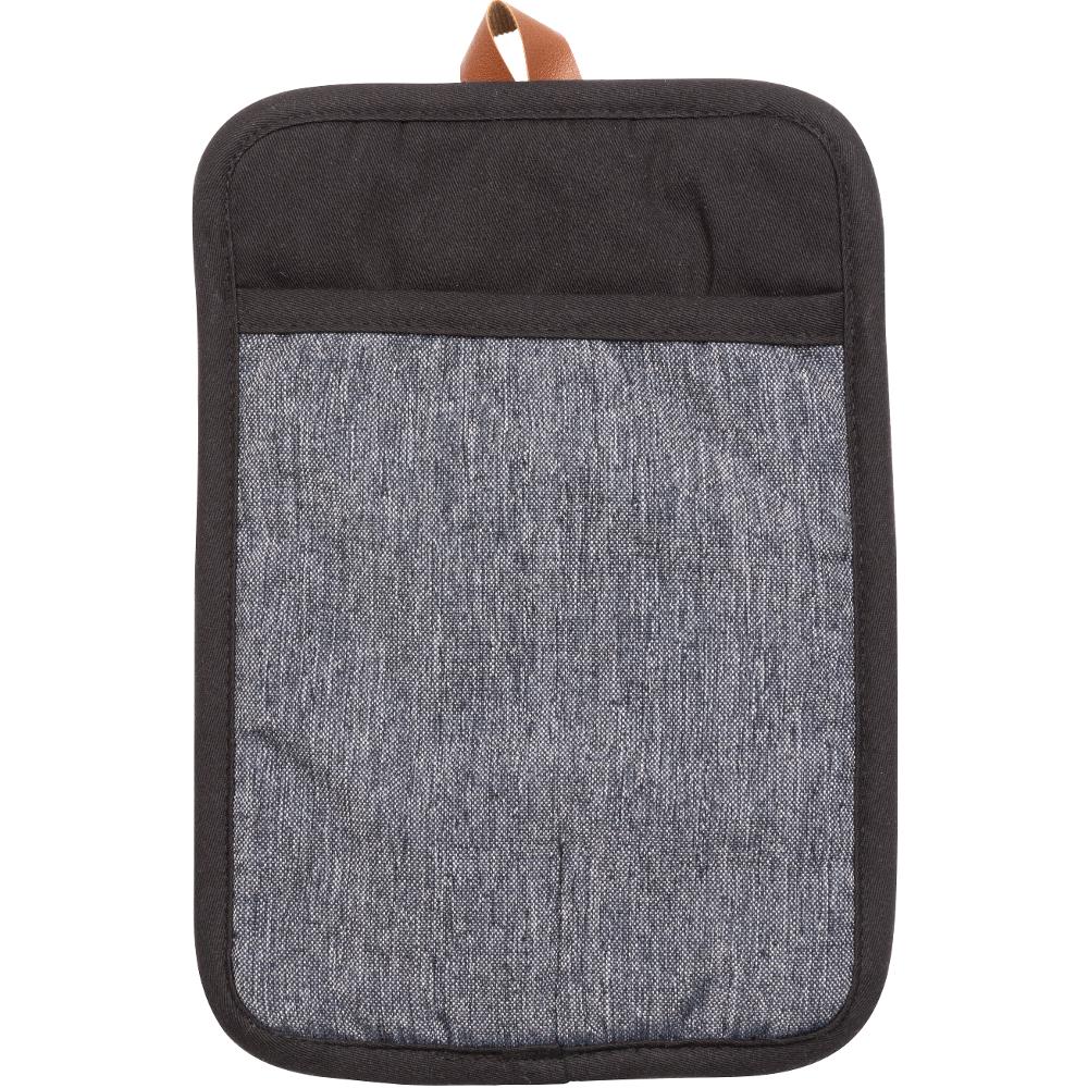 The mat is made of durable fabric, with cotton and a pocket on one side, and silicone on the other for better heat resistance and a non-slip surface.