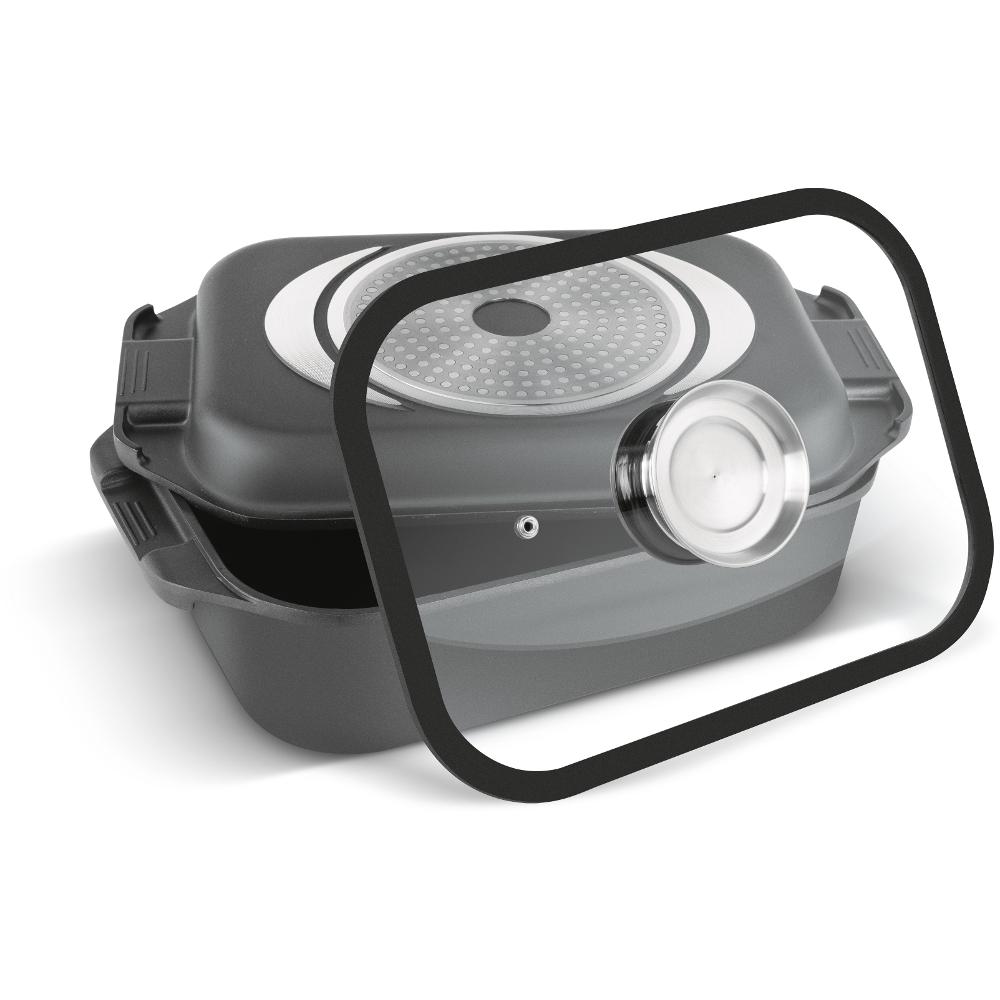 Aluminium lid with grill plate. Excellent thermal conductivity.