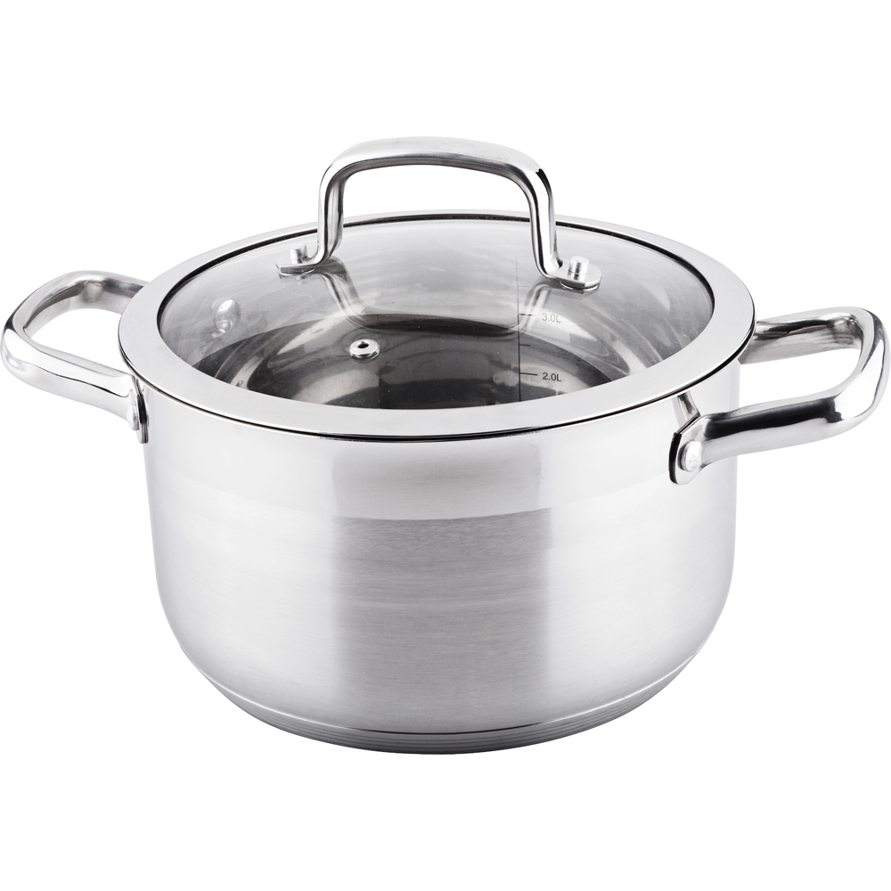Pot with glass lid, ø22x12,5cm; 4,6l - Prestige High quality stainless steel cookware Made from first-class stainless steel Lid from durable glass with wide SS rim Lid with a hole for steam for precise cooking control Liter scale