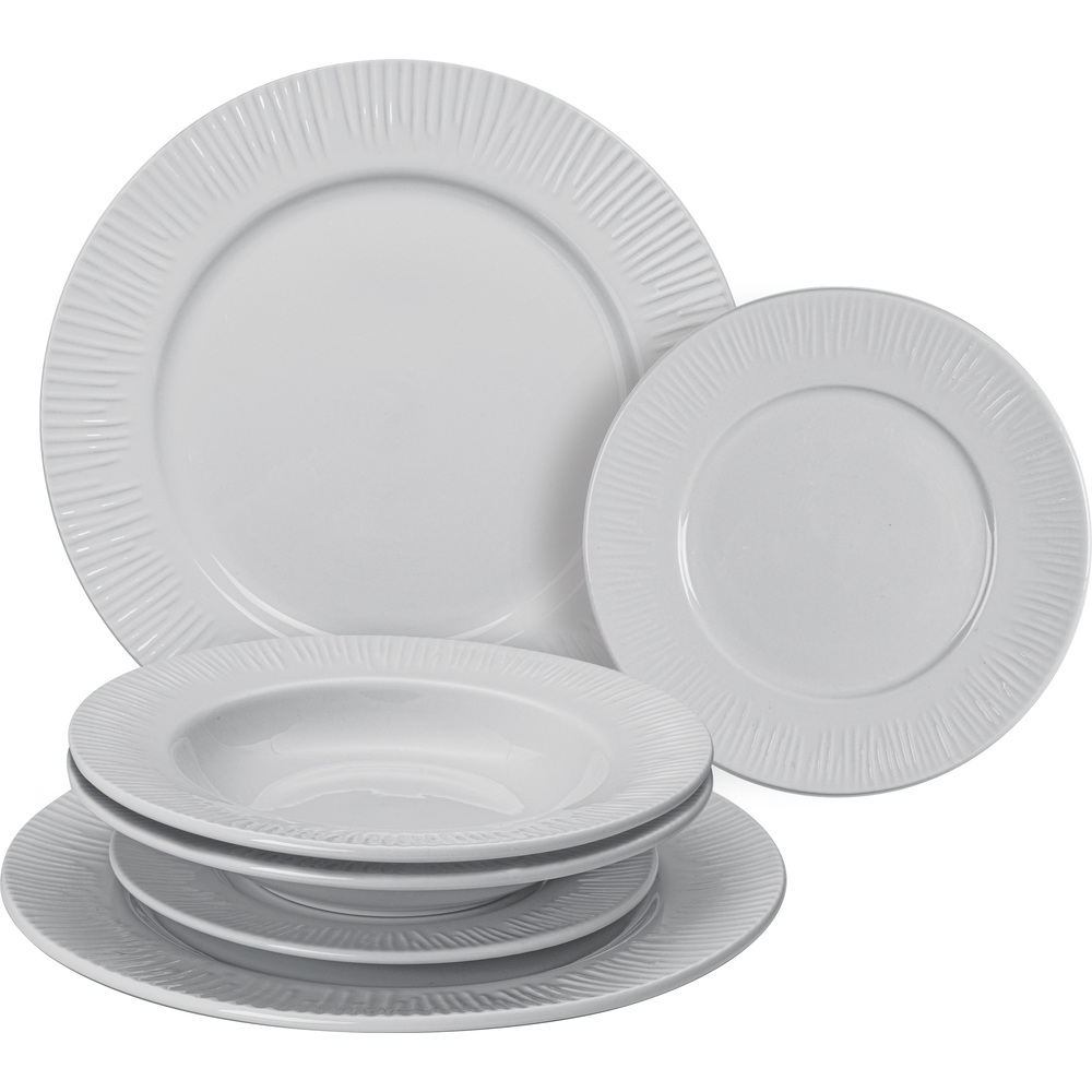 The dining plate set includes 2x shallow plates, 2x deep plates and 2x dessert plates.