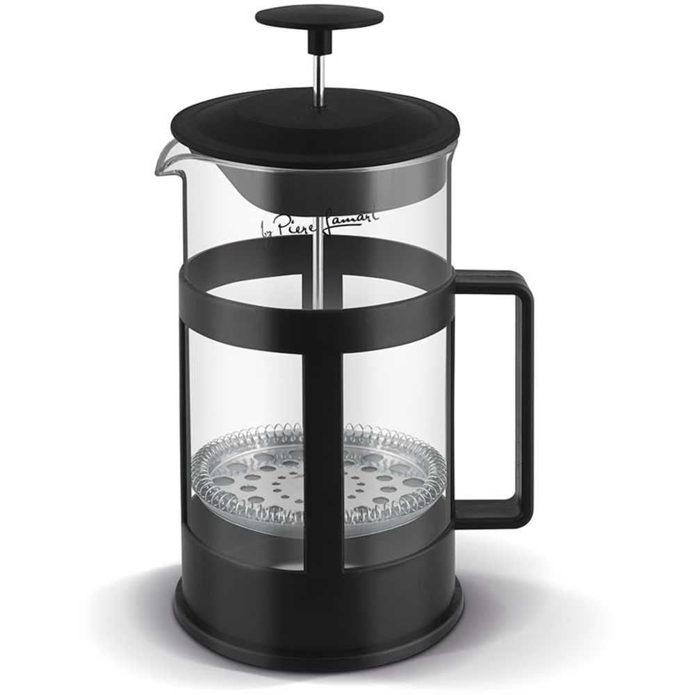 The kettle contains a stainless press filter for teas and ground coffee.